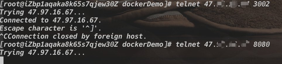 访问部署的静态地址服务器id:3002,注意服务器要确认防火墙是否放开3002端口,使用telnet 服务器id 端口号来确认服务器是否对外开放该端口,图中3002端口为已开放,8080为开放,可以去服务器管理网页找到防火墙增加端口